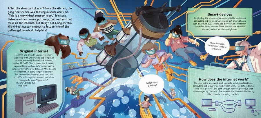 To some, a day at the science museum isn't full of action and adventure. But for the Museum Kids, it's exactly that, as a magical elevator ride takes them into the past to learn more about science! They visit China to see the first fireworks and Italy to peek through Galileo's telescope on a guided tour of science's biggest moments. Beautiful illustrations keep readers turning pages to follow the Museum Kids as they solve problems, face danger, and learn a lot! A concluding quiz tests what the Museum Kids and readers have learned on their exciting adventure.