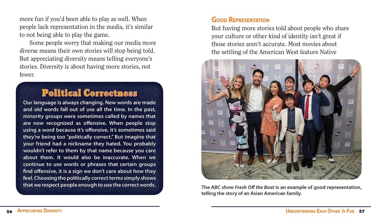 In a time of divisive headlines, it's vital for students to learn the many ways diversity makes the world a better place. With this volume, students will be encouraged to celebrate the many different cultures of the globe. They will learn to understand concepts like intersectionality and discrimination, and how these concepts affect them and their friends. Young readers will learn why it is important to respect everyone no matter how different they may seem. The narrative simplifies complex ideas, making them accessible to students and showing them that when we celebrate our differences, the world becomes a friendlier place.