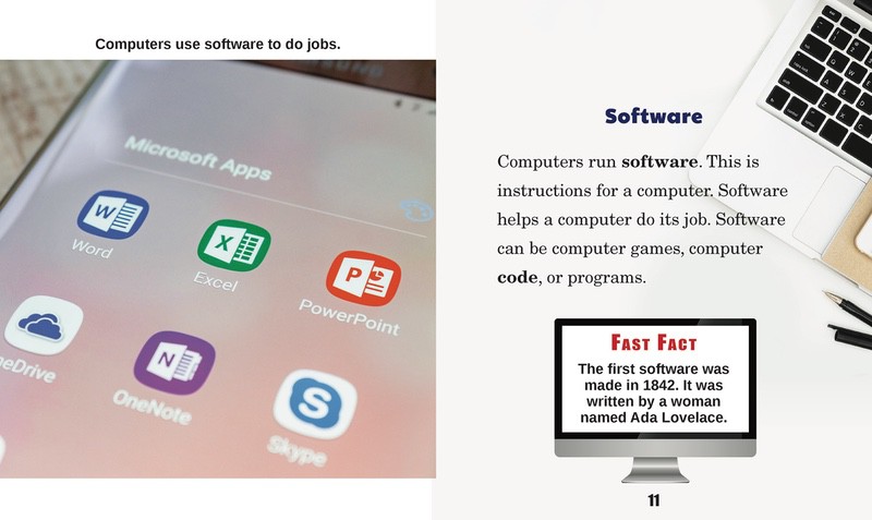 Computers are an integral part of our modern world. Children are being exposed to them at an increasingly young age, so a fundamental understanding of technology has become essential. In this introduction to the world of computers, readers take a look inside a computer and become familiar with hardware, software, and all of the parts that make them work. The simple text explains terminology in a way that is easy to grasp, while full-color photographs and fast facts add interest to this first look at computers.