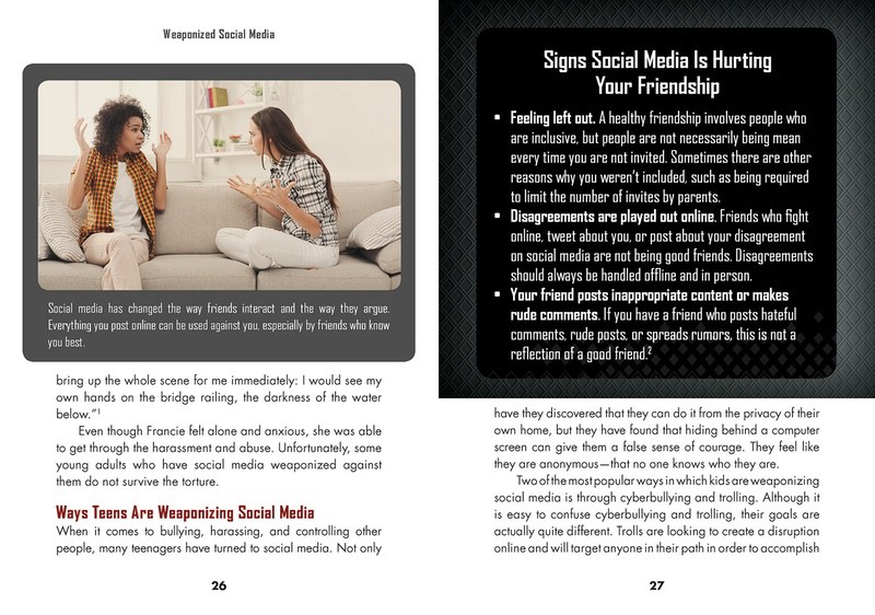 Originally conceived as a way for people to stay connected, share photographs and post information, social media has evolved. Today, it is much more than a fun communication tool, it can become a destructive weapon when exploited by the wrong people. Readers will discover how social media is used as a weapon and what they can do to protect themselves. From Russian bots and fake news to cyberbullying and online shaming, readers will discover who is weaponizing social media and why. They also will uncover useful information about the benefits of social media and how they can use it in beneficial ways. This book also includes a glossary of useful terms and a list of helpful references for further exploration.